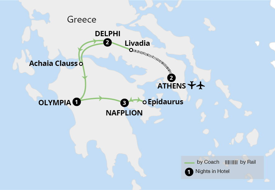 Explore a wealth of historic gems on this journey through Greece and the Peloponnese. Beginning with a two-night stay in Athens, enjoy a guided tour of the magnificent Acropolis, viewing the Parthenon and the jaw-dropping treasures of the museum. Uncover iconic sites overflowing with Greek mythology in Delphi and discover the birthplace of...